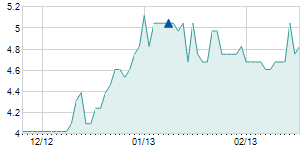 | 11/6/2009 | +1.50 / +5.15% | 30.60 | 30.60 | 29.00 | 30.60 | 30.60 | 15.54 | 77,700 |   |
