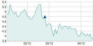 | 11/12/2010 | -0.80 / -4.26% | 19.10 | 19.10 | 17.80 | 18.00 | 17.98 | 4.77 | 32,500 |   |