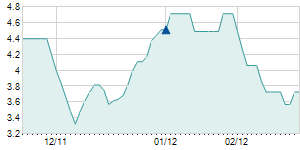 | 3/7/2011 | 0.00 / 0.00% | 14.90 | 15.50 | 14.50 | 15.50 | 14.94 | 4.10 | 6,700 |   |