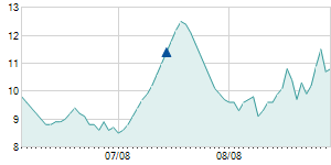 | 6/26/2017 | +0.80 / +9.09% | 9.30 | 9.60 | 9.10 | 9.60 | 9.30 | 8.04 | 1,810 |   |