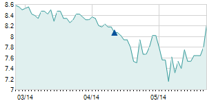 | 8/25/2014 | -0.20 / -1.47% | 13.50 | 13.50 | 13.40 | 13.40 | 13.40 | 2.82 | 8,700 |   |