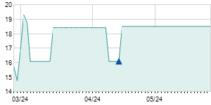 | 2/16/2017 | -0.50 / -2.50% | 20.50 | 20.50 | 19.50 | 19.50 | 20.38 | 6.31 | 1,701 |   |  |