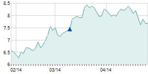 Closing price on 1/29/2015