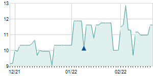 Closing price on 3/31/2022