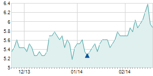Closing price on 3/6/2008