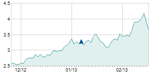 Closing price on 8/13/2012