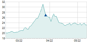 Closing price on 2/22/2022